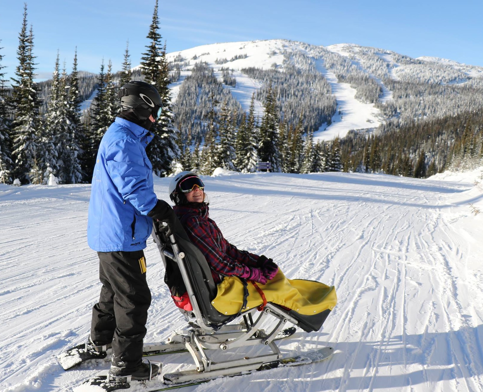 The BEST and ONLY WAY for non-skiers or snowboarders to glide along snow-covered mountain trails, to enjoy breathtaking vistas, to actually join your group, friends or family on the mountain, on the slopes! Your personal Snow Limo chauffeur will take you for a comfortable snowy mountain trail excursion and show you all the sights that you have not been able to see up to now! Enjoy the exhilaration of snow-gliding downhill in a comfortable and environmentally friendly, gravity powered and chauffeur driven Snow Limo. Join friends and colleagues on the slopes and with them enjoy all that the mountain has to offer. Non-skier/boarder parents or grandparents can now witness the exploits of family youngsters firsthand, "live and on the slopes"! In choosing your winter snow destination resort ensure that it features Snow Limo operations to provide you with the fullest enjoyment. With Snow Limo you are no longer left on your own, you join in the on-slope fun! Dress for the snow, wear your smile, and come ride the slopes with Snow Limo Tours! |